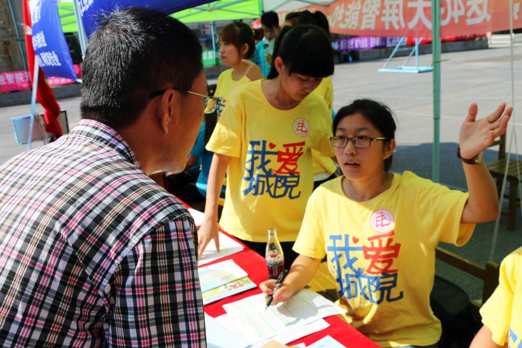 新生报到处设置在教学楼一、二层,各分院的大本营依次排列,方便新生寻找自己的学院。每个分院都安排了专门为新生及家长服务的志愿者,并安排了各个专业的在校生在现场详细告知每个新生入学的相关事项,帮助他们更好地熟悉校园。