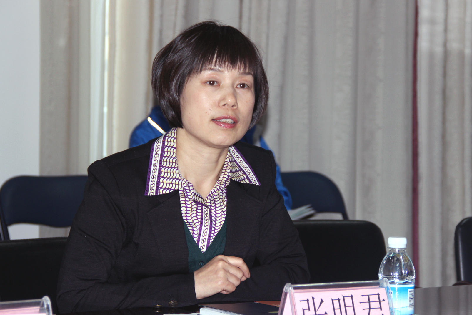 | 张明君副院长对向客人介绍情况 |