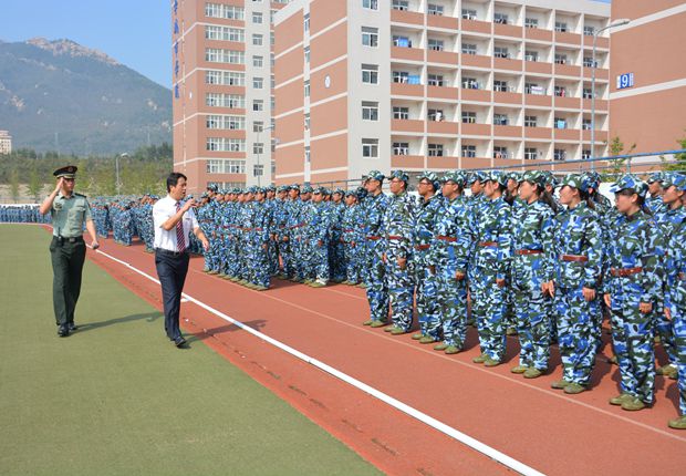 9月6日,经过10天军训的2014级新生英姿飒爽、军容严整,在体育场接受学院领导和嘉宾的检阅。匡国柱、郭玉铸、杨斌、张明君、沈海龙、宋辉以及沈阳军区综合训练基地副政委赵宏光出席军训汇报表演暨总结大会。党群工作部主任赵姝婕主持大会。