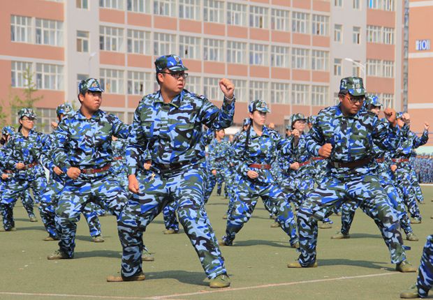 分列式检阅完毕后,240名受训新生进行了军体拳表演,雄壮的气势和精彩的表演赢得了与会领导和现场观众的阵阵掌声与喝彩。