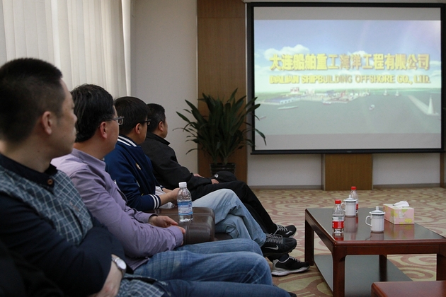 当日下午,考察团一行首先来到公司办公区大厅,在公司负责人的细心讲解下,参观了BINGO 9000型半潜式平台、JU2000E型、CJ46型自升式钻井平台、F&G 9500型半潜式钻井平台的等比例缩小模型,继而在会议室观看了介绍公司产品的相关视频。同志们纷纷就自己感兴趣的问题进行提问,公司负责人也耐心细致地一一作答。当日下午,考察团一行还实地参观了船坞、船台等生产线,近距离感受了钻井平台的宏大与壮观。