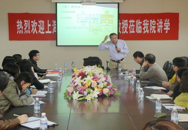 11月14日下午,上海外国语大学博士生导师郑新民教授莅临69堂
