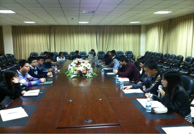 10月18日下午,由学院党群工作部主办的“自强不息 奋发有为”优秀学生党员座谈会在八楼会议室召开。参加此次座谈会的有优秀学生党员董文嘉、吕婉晖、朱斯洋、安琪四位同学以及参加69堂