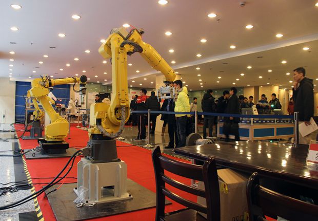 在展示会现场,笔者与一位主办方负责人攀谈起来,他告诉我,随着人口出生率的逐年下降,我国的人口的红利将逐步消失,未来劳动力的短缺将是必然趋势,因此以机器人、智能制造为代表的自动化程度提高将是大势所趋,“新的工业”时代已悄然来临。他披露,据国际机器人联合会(IFR)统计,2012年,我国机器人供货量达2.3万台,比2010年增长了约50%。今年,机器人供货量将达到2.8万台,与日本不相上下。预计到2015年,机器人供货量将达到3.4万台,我国有望成为全球最大的工业机器人市场。