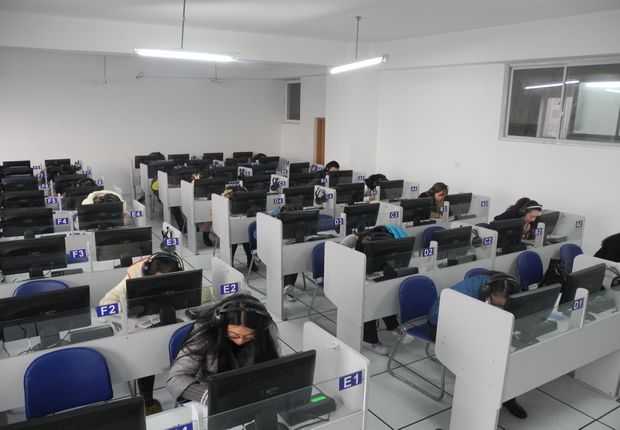 12月2日下午,英语专业教研室于实验楼四个语音教室为全体英语专业2012级学生进行“全景”模拟英语专业四级考试。