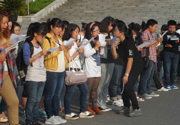 图书馆前广场就已是人头攒动,书声朗朗。来自全院各个专业的近200名新生纷纷从寝室、餐厅、教室汇集在这里,参加由外国语学院英语俱乐部举办的新学期“阳光晨读”活动。