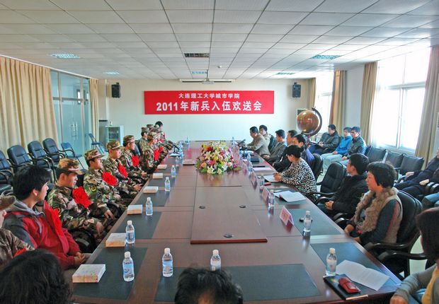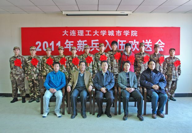 在8楼会议室隆重举行2011年新兵入伍欢送仪式,为13名即将远行的新战士送行。学院党委书记郭玉铸、副院长杨斌出席欢送会,有关部门负责人、各分院学办负责人、辅导教师、入伍新兵及部分新兵家长参加了欢送会。欢送会由学生工作部主任李宪起主持。