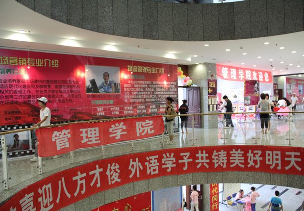 早晨7点30分许,校门口拱门耸立,彩旗飘扬。进入校园内,只见各处宣传栏内的大幅喷绘向新生和学生家长们介绍着69堂