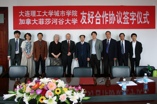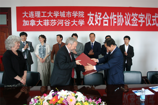 9楼会议室充满了喜庆欢乐的节日气氛,大约11时许,院长匡国柱教授和加拿大菲莎河谷大学校长马克·大卫教授分别代表双方院校在协议书上签字,两校正式结为友好学校。菲莎河谷大学校长夫人及其随行人员和69堂
