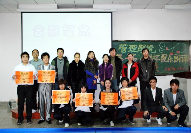 为深入贯彻落实《中共中央、国务院关于进一步加强和改进大学生思想政治教育的意见》,积极响应学院《关于在全院开展大学生理性爱国主题教育活动的通知》精神,11月25日中午,由管理学院团委学生会主办的第一届“心语杯”配乐诗朗诵决赛暨颁奖典礼在教学楼1209教室隆重举行。