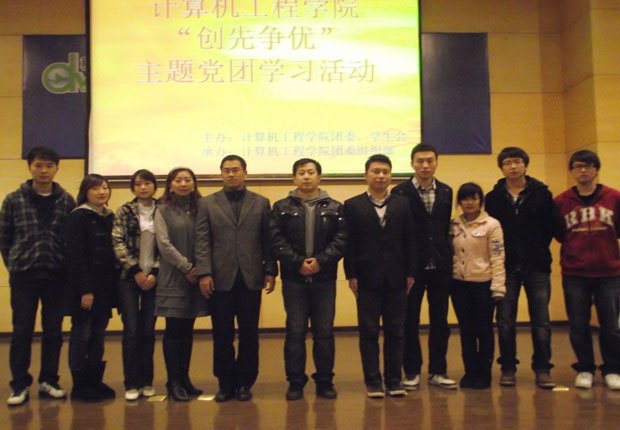 为了进一步落实学院“创先争优”活动的工作要求,由计算机工程学院各专业学生党支部联合举办,计算机工程学院团委承办的“创先争优”主题学习报告会,于11月19日晚5点30分在图书馆报告厅举行。计算机工程学院各学生党支部书记、委员作为嘉宾出席了此次活动。