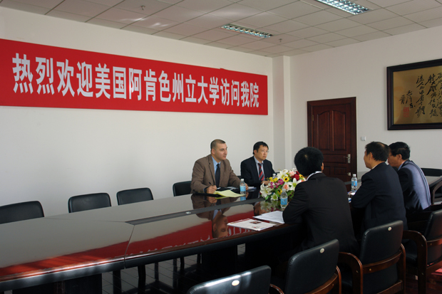 给予的热情接待表示衷心的感谢。他说,阿肯色州立大学拥有百年历史,拥有学士、硕士和博士学位授予权。我们校长和你们拥有同样的观念和理念,都致力于办学模式的国际化。希望你们能成为我们校长的客人,也希望我校能成为贵校学生的第二个故乡。