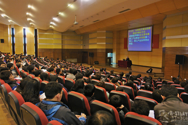 分党校特聘教师罗均炎在图书馆报告厅作题为《加快经济发展方式转变》的辅导报告。全院无课教工、无课学生党员和部分学生代表共五百余人聆听了报告,学院领导郭玉铸、杨斌、王铁成、沈海龙等出席了报告会。
