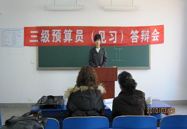 3月28日,建筑工程学院06级学生三级预算员答辩会在教学楼7楼举行,参加答辩的145名学生顺利过关,通过率达到100%。