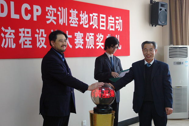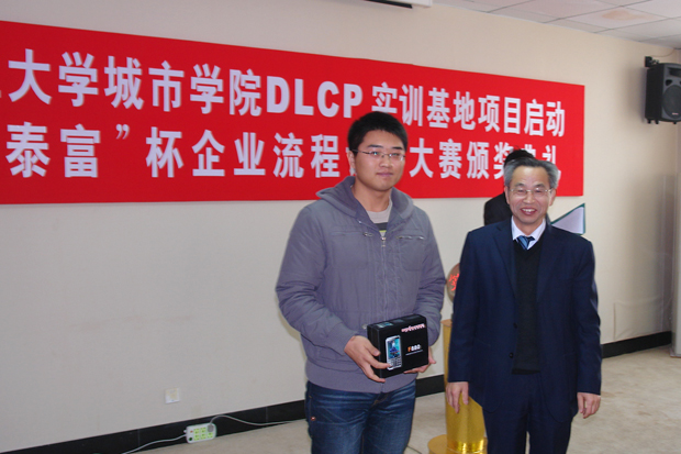 在全场热烈的掌声中,与会领导为参加“大连泰富杯”企业流程设计大赛的优胜者颁发了奖品。