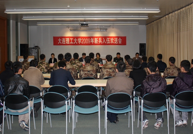 2009年新兵入伍欢送会。副院长兼党委副书记杨斌、院长助理兼学生指导部主任李宪起出席欢送会。