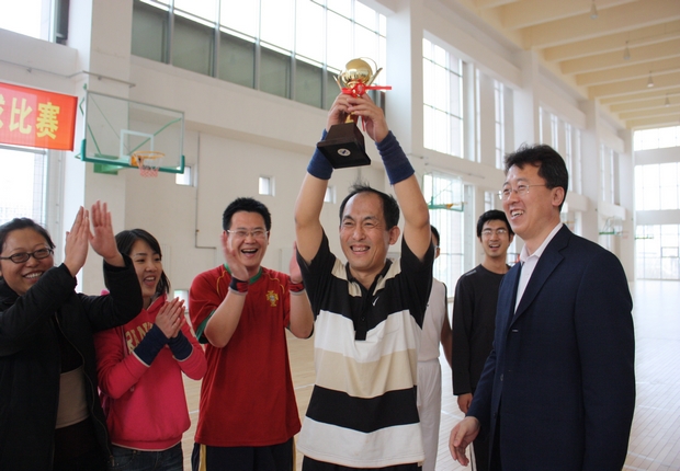 学院党委书记郭玉铸亲临现场观看了决赛,并为获得冠军的教工代表队颁发了奖杯。