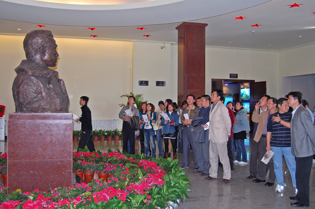 (参观者在关向应塑像前)