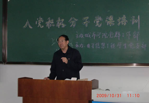10月31日,由学院党委主办,电子信息工程专业学生党支部承办的2009年第二期入党积极分子培训班正式开班,来自全院11个专业的245名入党积极分子参加了此次培训。