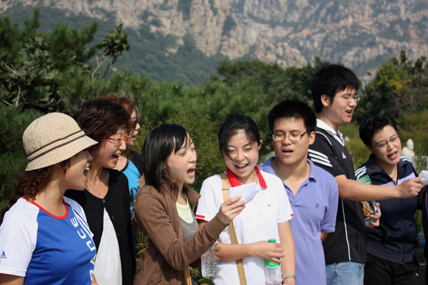本次活动的主题是“登顶大黑山,我为祖国唱红歌”。在点将台前,各分院、各部门老师你方唱罢我登场,进行了拉歌比赛。计算机工程学院和电子与自动化学院演唱了“打靶归来”和“学习雷锋好榜样”;管理学院、建工学院、艺术与传媒学院、机关和教辅部门的各位老师一起合唱了“团结就是力量”;外国语学院还为大家献上了精彩的二部轮唱。图书馆尽管只有7人参加登山和赛歌活动,但还是为大家献上了“让我们荡起双桨”。一时间,或雄浑、或高亢的歌声伴着热烈掌声在大黑山之巅荡漾。