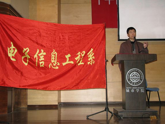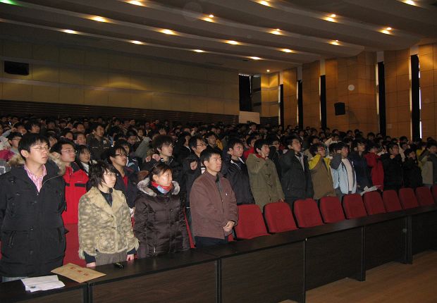 为了迎接即将到来的期末考试,12月22日,电子系在图书馆报告厅召开了诚信考试宣誓大会。参加会议的有电子系系主任张辉,电子系辅导室全体教师以及06级学生代表和07、08级全体学生。