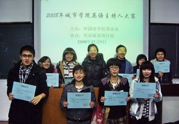 此次比赛由外国语学院英语系主办,英语演讲项目组承办。比赛分为即兴情景对话、美文朗读及个人语言展示三个环节。经过层层比拼,来自英语系0802班的黄谌阳同学夺得桂冠;日语系0804班史清、工商管理系0808班杜晶晶获得二等奖;工程管理系0801班郑蓓蓓等7名同学分别获得三等奖和优秀奖。
