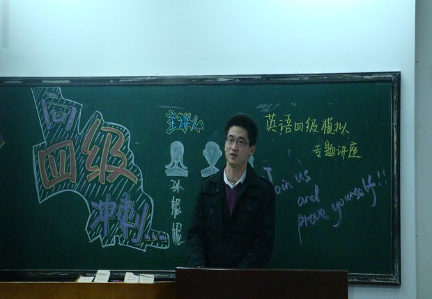 此次四级模拟比赛分为两大部分——英语学习经验交流会和四级模拟考试。在经验交流会上,英语系0602班张嘉欣、工商管理系0607班孙妮妮和电子系0605班蒋理三位优秀同学就英语学习方法和大学学习生活向同学们介绍了经验。在12月3号举行的四级模拟考试中,190多名同学在1210和1211两个教室中进行了100分钟的模拟考试。
