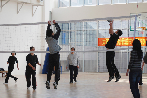 新近落成的体育馆二楼训练馆内进行,采取小组单循环赛制,每个小组前两名出线后进行交叉淘汰赛。各队实力在伯仲之间,比赛精彩激烈。本次比赛的裁判工作由院学生社团联合会排球社成员担任,同学们的工作尽职尽责,保障了比赛的顺利进行。冠亚军之争在艺术与传媒学院教工代表队和机关教工代表队之间展开,经过三局苦战,艺术与传媒学院教工代表队最终以微弱优势夺得桂冠。