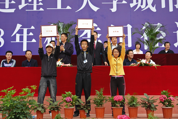 经过激烈角逐,建筑工程学院代表队和机关代表队分别获得学生组团体和教工组团体总分第一名;建筑工程学院代表队和外国语学院代表队分别获得学生男子和学生女子组团体总分第一名。工商管理系、信息系、艺术与传媒学院、自动化系分别获得精神文明奖。