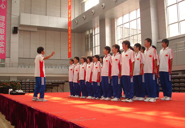 比赛过程精彩、激烈,《壮志在我胸》、《真心英雄》、《团结就是力量》、《军旗上飘扬着我们的歌》、《打靶归来》、《当那一天来临》……一首首激扬的乐曲唱出了同学们的万丈豪情,展现了新一代大学生良好的精神风貌。