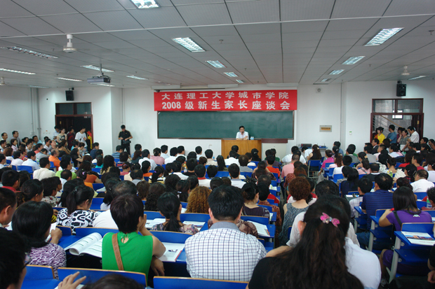 按说今年新生报到时间只有一天,大部分学生家长在23日为孩子办完手续后已经踏上归途,300多个座位的教室应该是绰绰有余。然而出人意料的是,原定在下午1点30分召开的会议,在1点20分会场就已经座无虚席,许多学生家长还在陆陆续续地涌入。见此情景,学院紧急增加了几十个临时座椅,可座位还是不能满足需求。无奈之下,原定参加会议的分院院长和系主任们只能退席为新生家长让出位置,一些家长还破天荒地和学院领导坐到了一起,呈现出一派学院领导和学生家长亲如一家、其乐融融的动人场面。