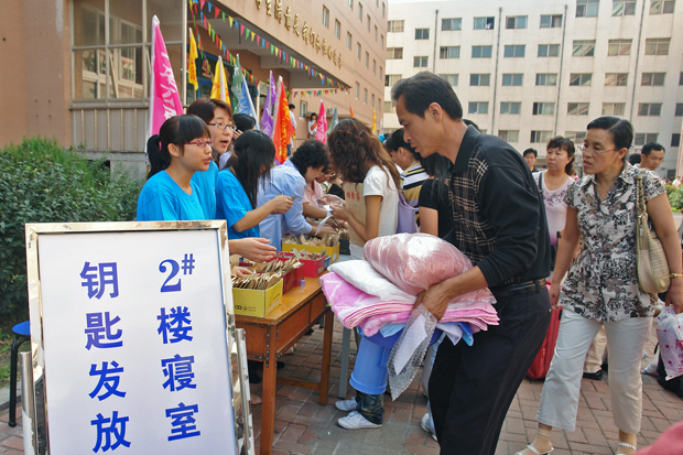值得一提的是,许多老师、大学生志愿者牺牲了假期休息时间,提前返校开展迎新准备工作。在迎新活动中,他们周到热情,细致认真,得到了学生及家长的充分肯定。暑假期间,后勤部门也做了大量卓有成效的工作,使教学区、生活区的许多场所焕然一新。几位在二食堂就餐的学生家长对笔者说,学院食堂宽敞明亮,整洁优雅,饭菜价格也很合理。一位来自鞍山的学生家长说,来大连前,感觉大连是一座国际化的大都市,物价应该很高,学校食堂的价格肯定也会高得离谱,他也为此做好了每天为儿子支付20元餐费的思想准备。然而出乎意料的是,23号中午一餐,他们全家三口却只花了区区11块钱,这位家长连呼想不到,想不到。