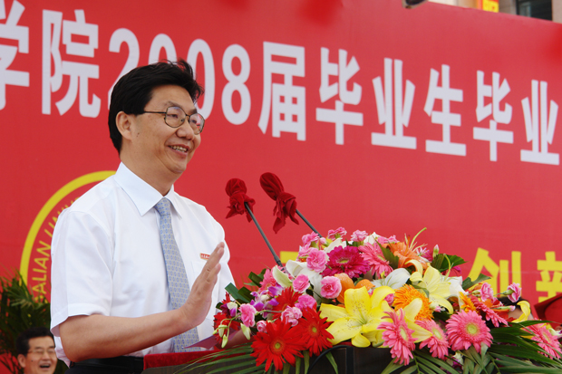 这个大家庭里,大家团结互助,克服困难,积极进取,努力学习,经过学院严格考核,今天毕业了。你们是幸运的,因为在校的这几年,见证了学院创建与发展的历程。学院自2003年办学以来,秉承以学生为中心,理论联系实际的办学理念,充分发挥机制创新和办学模式优化,以培养高素质的应用型人才为目标,面向社会发展办学,取得了超常规的迅速发展。到目前为止,学院已经拥有5个学院、15个系、55个本科专业(方向),7600多名在校生,教师队伍达到513人。2007年毕业生626人,就业率达到了94.1%。今年毕业生1443人,毕业生就业又呈现出喜人的局面。到目前为止,如果包括灵活就业,学生就业率已经大大超过了90%,其中协议就业率为80%,有许多学生考取了研究生,甚至重点大学的研究生,就业状况明显好于去年。经过学院四年的精心培育,使学生真正有所学、有所长,毕业生一走出校门,就受到了社会和企业的广泛欢迎,这充分反映出学院在人才培养和社会需求之间已经达到了有机的统一。目前,学院在辽宁省的招生报考人数已超过计划人数的5倍以上,而且在多个省份录取分数超过当地二本线。这一切成绩的取得离不开69堂