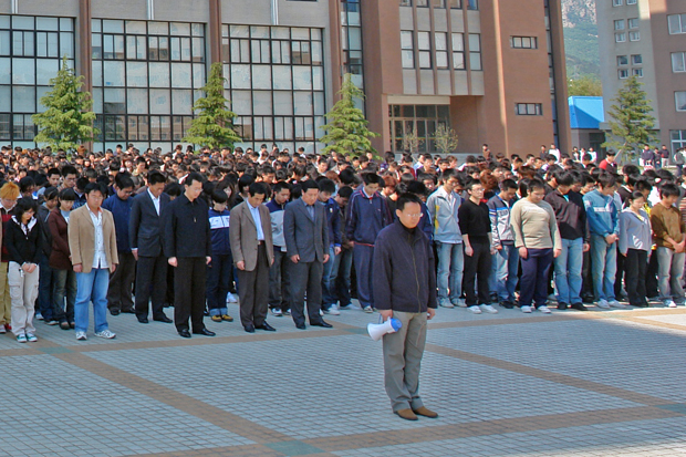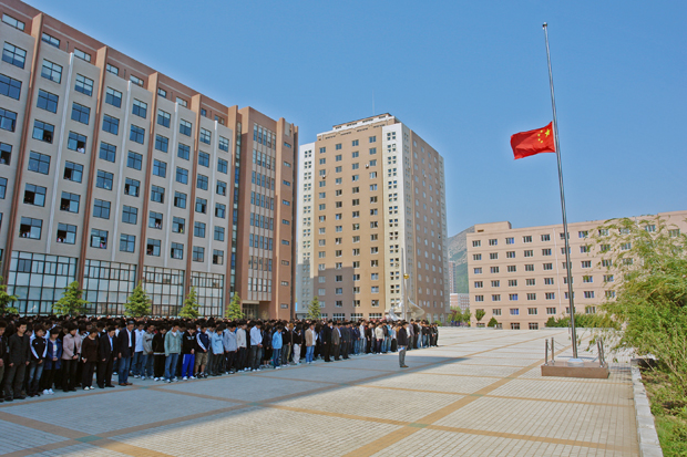 1000余名无课师生自发来到教学楼前广场国旗前默哀3分钟,有课师生也在教室内表达了对四川汶川大地震遇难同胞的深切哀悼。院党委书记郭玉铸、副院长杨斌、王铁成,院长助理马建军、沈海龙、李宪起、院工会主席李连富等同志参加了默哀仪式。默哀仪式由院长助理沈海龙主持。