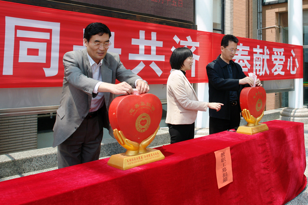 师生员工的心,连日来,大家在工作学习之余关注最多的就是灾区的抗震救灾情况,最想实现的心愿就是为灾区人民奉献自己的一份爱心。在学院的统一部署下,5月14上午,学院工会、团委、学生会等组织联合向广大师生发出倡议,号召大家为灾区群众渡过难关贡献一己之力。全院师生员工积极响应,迅速掀起为灾区人民送温暖、献爱心的热潮。在募捐活动中,许多大学生不仅在校内捐献,还通过手机捐款的方式给灾区人民送去了自己的爱心;大学生自强社成员都是家庭生活困难学生,他们也节衣缩食,为灾区人民捐款1800多元;69堂