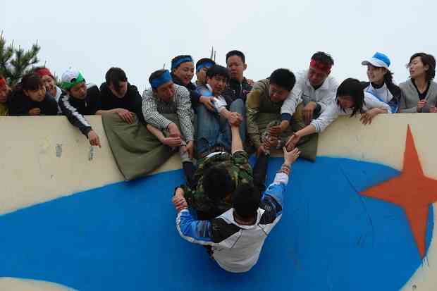“毕业墙”项目要求四十多人的团队在没有任何工具和不借助外力的情况下,仅仅依靠彼此协作的力量全部爬上四米高的“毕业墙”。很多人对能否在五十分钟内完成这个项目很不自信,连教练也说这是个最难的项目。然而,奇迹就是在这样的情况下发生了。项目计时开始之后,大家奋勇拚搏,配合默契。尽管打桩的教师需要承担很多人从肩上踏过的力量,然而没有人喊苦,没有人叫疼;打桩的老师累了,后面的老师迅速替补。“十四分零九秒”!当教练宣布这一成绩的时候,整个人群沸腾了,掌声经久不息……教练感叹:你们这个团队是我带过的所有的团队中最好的!许多事情也许连你自己都认为不可能,可是当你去尝试着依靠团队的力量,你就会发现,没有什么困难可以阻挡你前进的步伐。