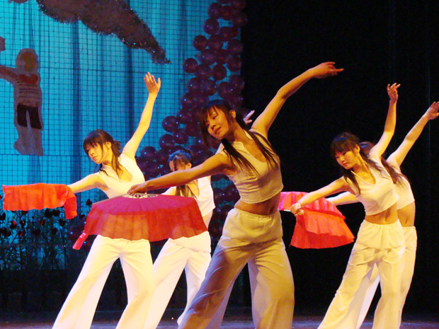 晚会现场以红色为主的背景色彩把舞台装点得格外温馨。各校同学们分别在义演晚会上表演了节目。其中69堂