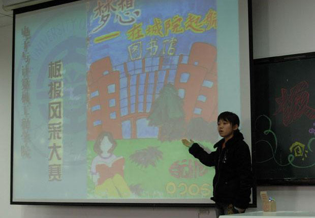 为了丰富同学们的业余文化生活,培养班级的集体荣誉感,电子与计算机工程学院学生会宣传部举办了以“开创未来,重任在肩”为主题的板报风采大赛。