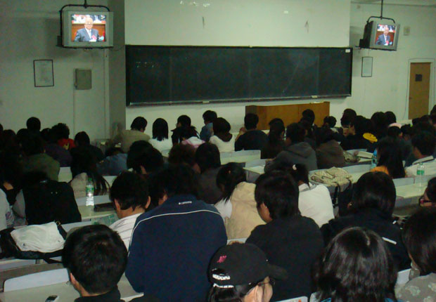 10月15日上午,举世瞩目的中国共产党第十七次全国代表大会在人民大会堂隆重召开,这是我党和我国政治生活中的一件大事。当晚七点钟,电子与计算机工程学院预备党员和入党积极分子约100多人,在实验楼JT101教室集中收看了中央电视台的相关报道。