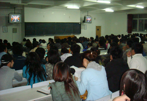 无课师生通过电视、网络、广播实时收听收看党的十七大召开的盛况和胡锦涛总书记所作的工作报告。当天晚上,各院(系)党组织组织党员、入党积极分子和广大学生400多人集体收听收看了十七大开幕式和胡锦涛总书记所作的工作报告,加深了对党的十七大精神的学习和理解,对党和国家的未来更加充满了信心。