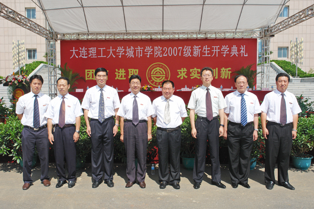 副董事长、大连松源企业集团公司李殿忠总裁前来参加开学典礼,感谢各位领导对学院的关心和支持。
