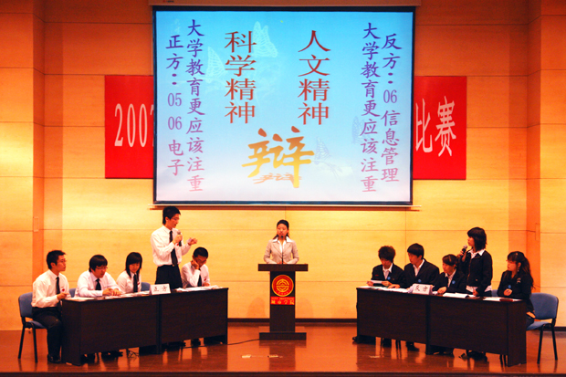 决赛的辩题是“大学教育更应注重科学精神还是人文精神”。选手们思路清晰,举例妙趣横生,从慷慨激昂的开场立论到咄咄逼人的攻辩阶段,从针锋相对的自由辩论到严谨密实的总结陈词,双方辩手们富有逻辑的表达,机智幽默的反应,赢得了在场观众的阵阵掌声。比赛结束后,新闻与公共管理系的卢春红老师对双方辩手的表现作了精彩的点评。