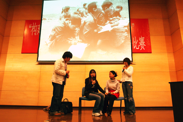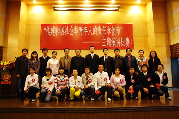 4月28日晚,院图书馆报告厅高朋满座,嘉宾云集,一场引人深思,催人奋进,令人鼓舞的“构建和谐社会与青年人的责任和使命”主题演讲比赛正在进行。