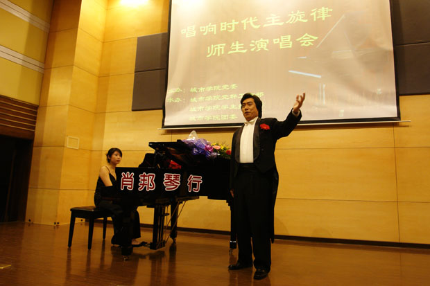 为丰富大学生业余文化生活,陶冶当代大学生的艺术情操。4月26日,由院团委主办的“唱响时代主旋律·赵岩师生演唱会”在学院图书馆报告厅隆重举行。王铁成副院长及各院系教师和同学们一起观看了演唱会。在一个半小时的时间里,赵岩老师用不同风格的表现形式为69堂