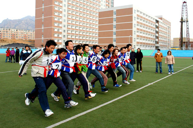 此次活动由学院团委主办,共有11个系参加了角逐。“热血12人”比赛,源于“2人3足”游戏方法。参加比赛的选手由12人组成,每相邻两个人的脚用布带绑紧,一字排开,共同跑完100米的距离,用时最短的队伍获胜。最后,新闻与公共管理系队获得冠军,英语系、物流管理系分获二、三名。