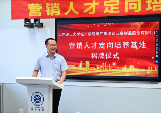 同龄,经过多年的发展,坚朗公司已成为建筑领域的著名品牌,行业标准的领先者。与坚朗公司建立营销人才定向培养基地,是学院积极“引企入校”的重要举措。学院将依托坚朗公司的市场资源和人才培养体系,探索和实践课程体系共建、教学过程共管、评价标准共定、教育资源共享、校企文化共融的校企一体化人才培养新模式。