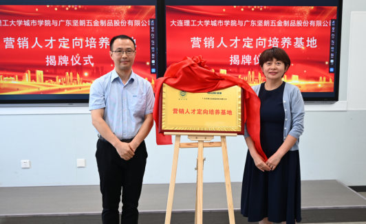 今年4月,就业工作部主任杨兆宇、管理学院党总支书记郭姝海远赴广东开展走访调研。期间走访了多家企业,最终与广东坚朗五金制品股份有限公司达成了初步合作意向,经过双方一个多月的交流协商,最终完成此次签约揭牌。