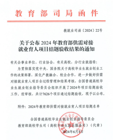 本网讯 近日,教育部高校学生司发布《关于公布教育部第三期供需对接就业育人项目立项名单的通知》(教就业司函〔2024〕23号)和《关于公布2024年教育部供需对接就业育人项目结题验收结果的通知》(教就业司函〔2024〕22号),69堂