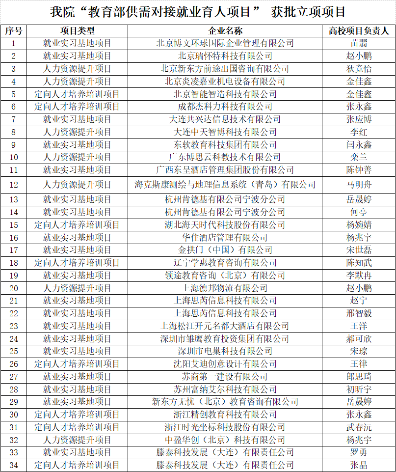 共有34个项目获批立项,获批立项数量再创新高。其中,包括19个就业实习基地项目、7个人力资源提升项目、8个定向人才培养培训项目;同时,9个项目顺利结项。立项和结项数均位列全省民办高校(含独立学院)前三位。