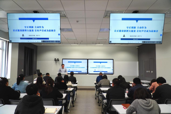 本次培训由党委宣传部、党委教师工作部共同举办。党委宣传部教师,二级党组织书记、组织员、宣传委员、新闻通讯员、网评员,网络思政工作中心全体教师共60余人参加。